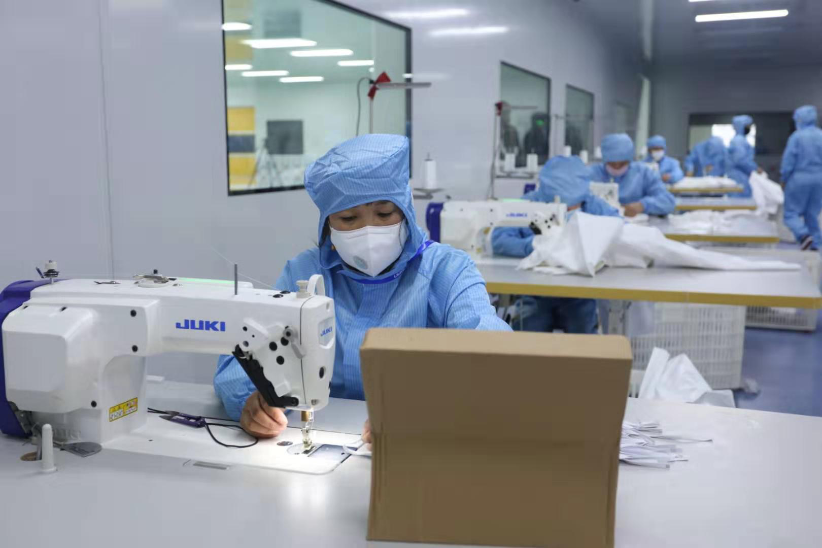 2月15日,极速3D集团新引进的口罩生产线全力开动,正式出产医用口罩产品。据悉,该批5条生产线满负荷运转后,日产口罩约50万片。此前的2月4日,极速3D集团联合晋江兴德织造有限公司启动了防护服生产,目前日均产能可达1000件。